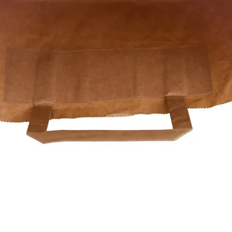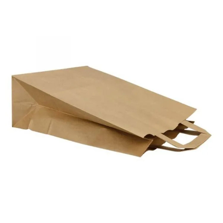 ফ্ল্যাট পেপার হ্যান্ডল সহ ক্রাফ্ট পেপার ব্যাগ ক্যাটারিং শিল্পে, সুপার মার্কেটে এবং উপহার হিসাবে ব্যবহার করা যেতে পারে। এগুলি শক্তিশালী এবং টেকসই উপকরণ দিয়ে তৈরি, বেশ কয়েকবার পুনরায় ব্যবহার করা যেতে পারে, কম্পোস্টেবল এবং বায়োডেগ্রেডেবল।